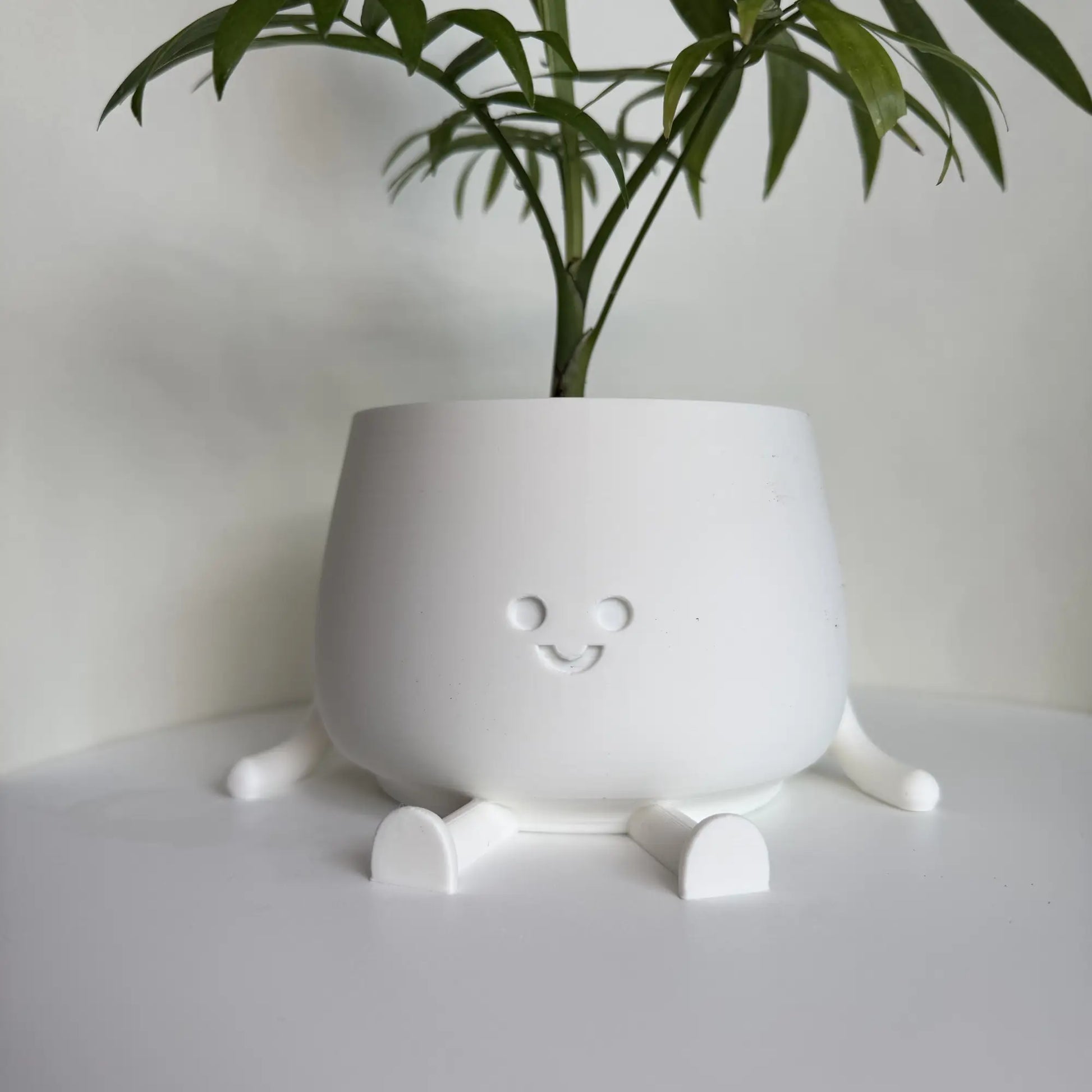 Wprowadź odrobinę radości do swojego domu dzięki tej uroczej doniczce drukowanej w technologii 3D, ozdobionej jasnymi oczami i wesołą, uśmiechniętą buzią. Jej zabawny design i żywe kolory sprawiają, że jest idealną dekoracją na biurko, półkę, do pokoju dziecięcego lub jako wyjątkowy prezent dla miłośników roślin.