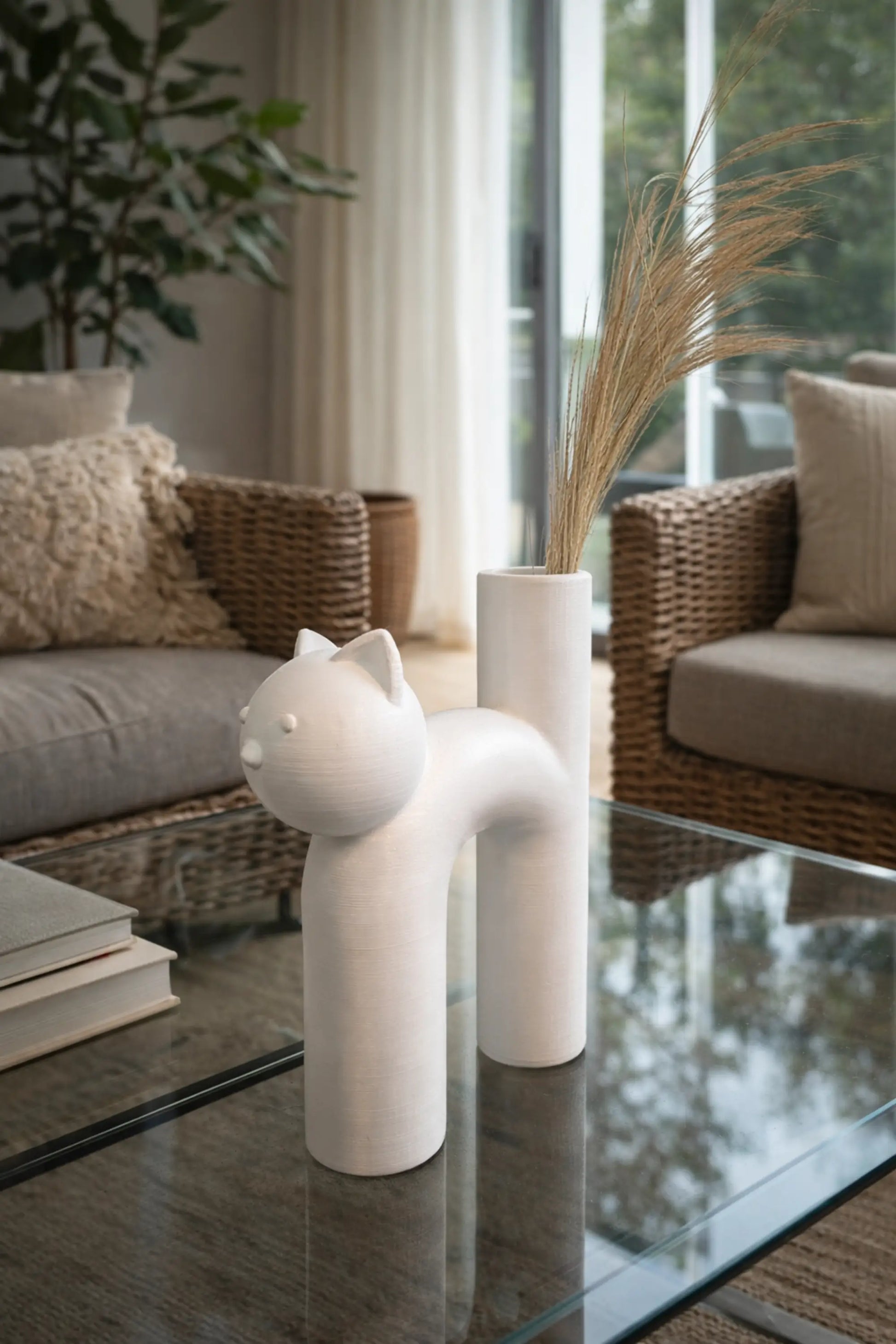 Wazon w kształcie kota. Minimalistyczny element wnętrza z charakterem.
